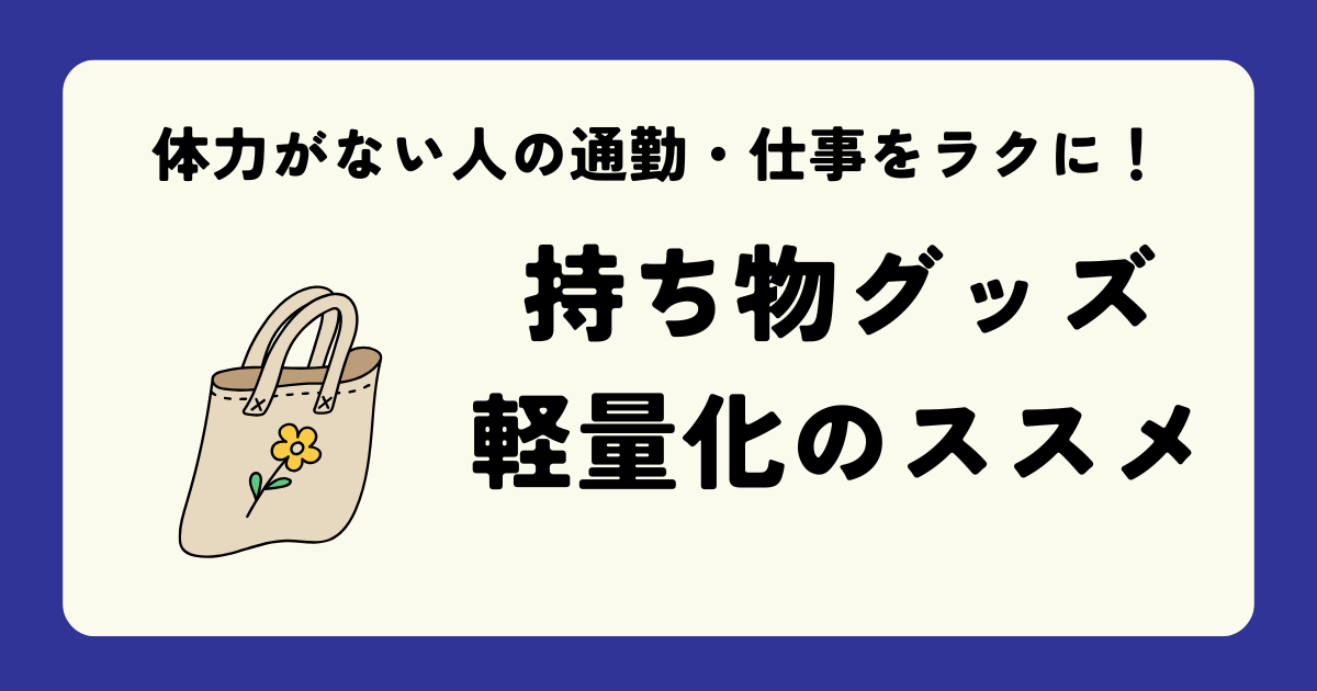 体力がないと通勤や仕事はとても大きなハードルになりますが、「持ち物」を」少し見直すだけで、だいぶラクになることがあります。